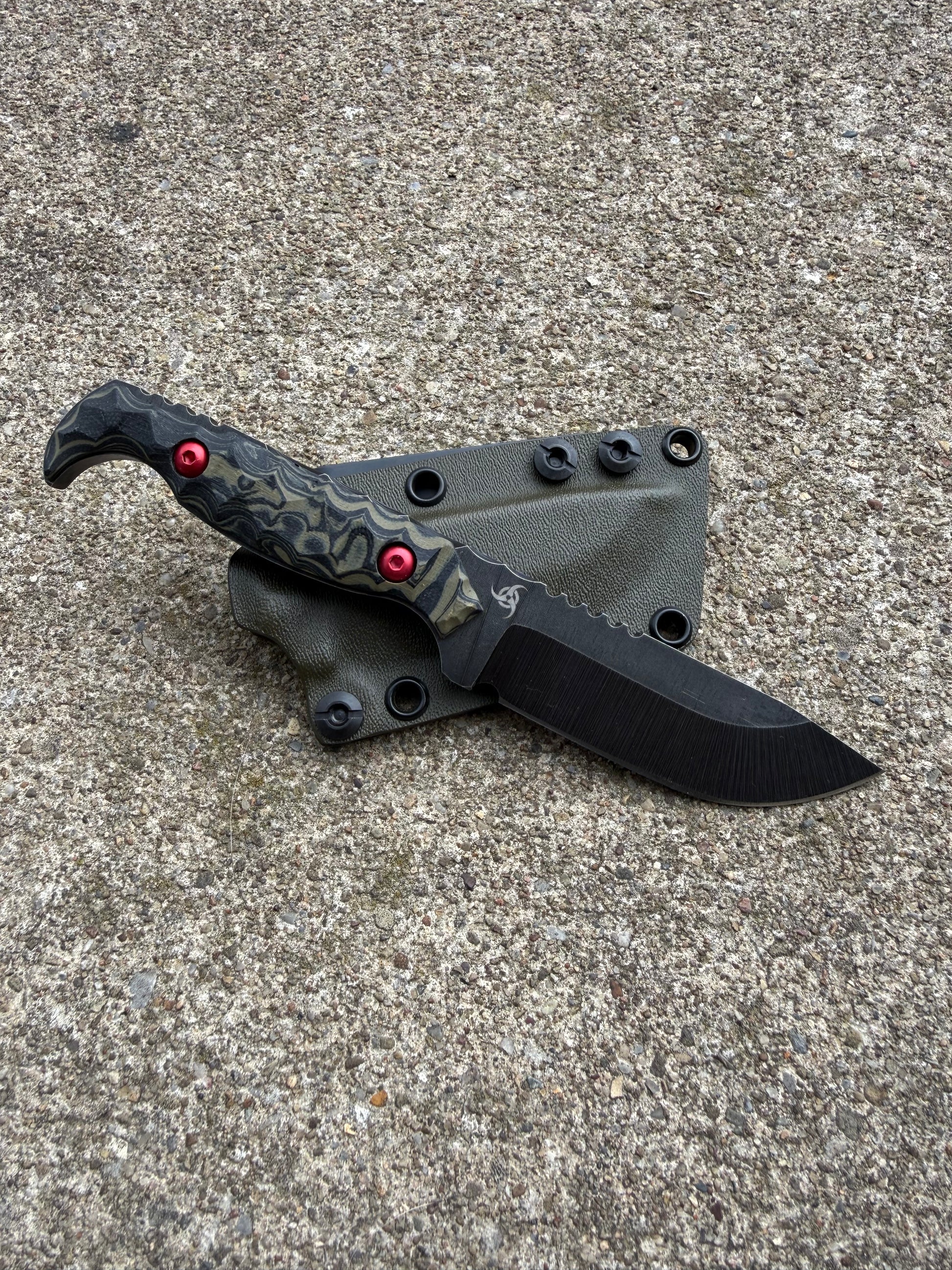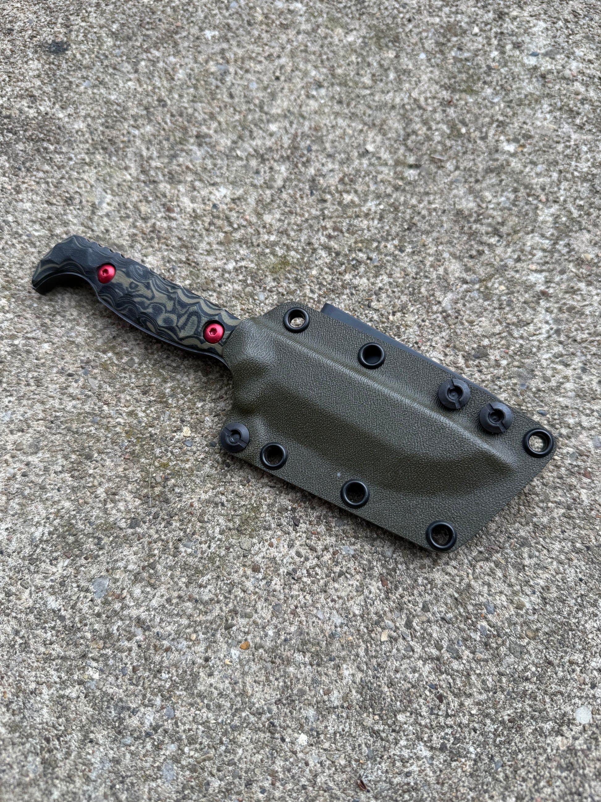 Handle: G10 (Layered Black & ODG) w/ Red Screws